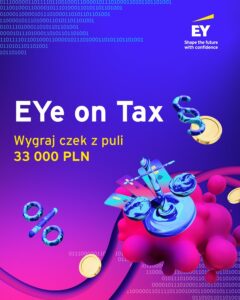 - EYe on TAX –XXI edycja prestiżowego konkursu dla studentów zainteresowanych doradztwem podatkowym. Od ponad 20 lat EY umożliwia uczestnikom zdobycie unikalnego doświadczenia poprzez pracę nad realnymi projektami biznesowymi związanymi z podatkami przyszłości. Konkurs od lat stanowi sprawdzoną drogę do rozpoczęcia kariery w doradztwie. Najlepsi mają szansę zdobyć nagrody z puli 33 000 PLN oraz otrzymać ofertę pracy w EY.