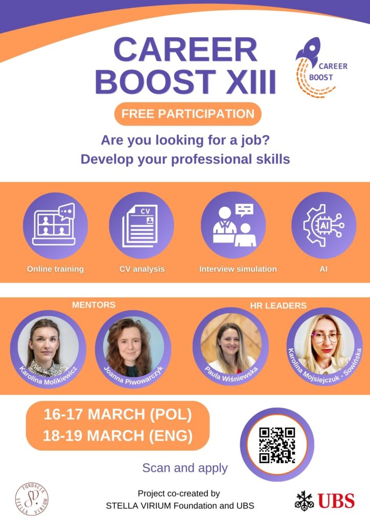 Ruszyła rekrutacja do XIII edycji projektu Career Boost! To wyjątkowa szansa, aby zdobyć nowe umiejętności, które pomogą Ci w procesie rekrutacji i rozwijaniu kariery.