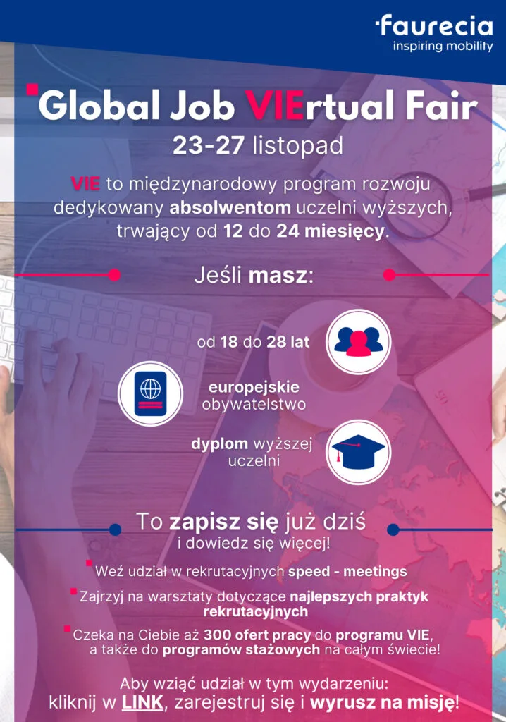 Faurecia Automotive Polska S.A. zaprasza do udziału w międzynarodowych targach w tematyce programów VIE (wyjazdów międzynarodowych dla studentów w celu zdobycia doświadczenia zawodowego).