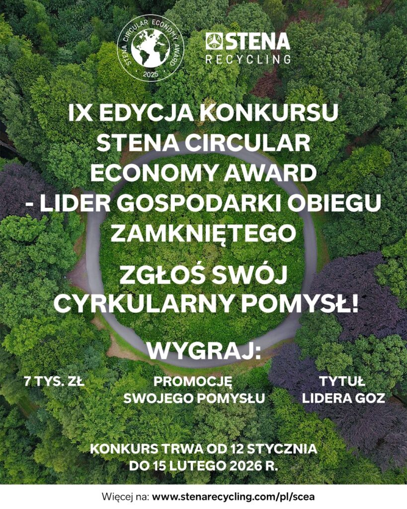 Szczegóły konkursu i formularz zgłoszeniowy: https://www.stenarecycling.com/pl/o-nas/stena-circular-economy-award/