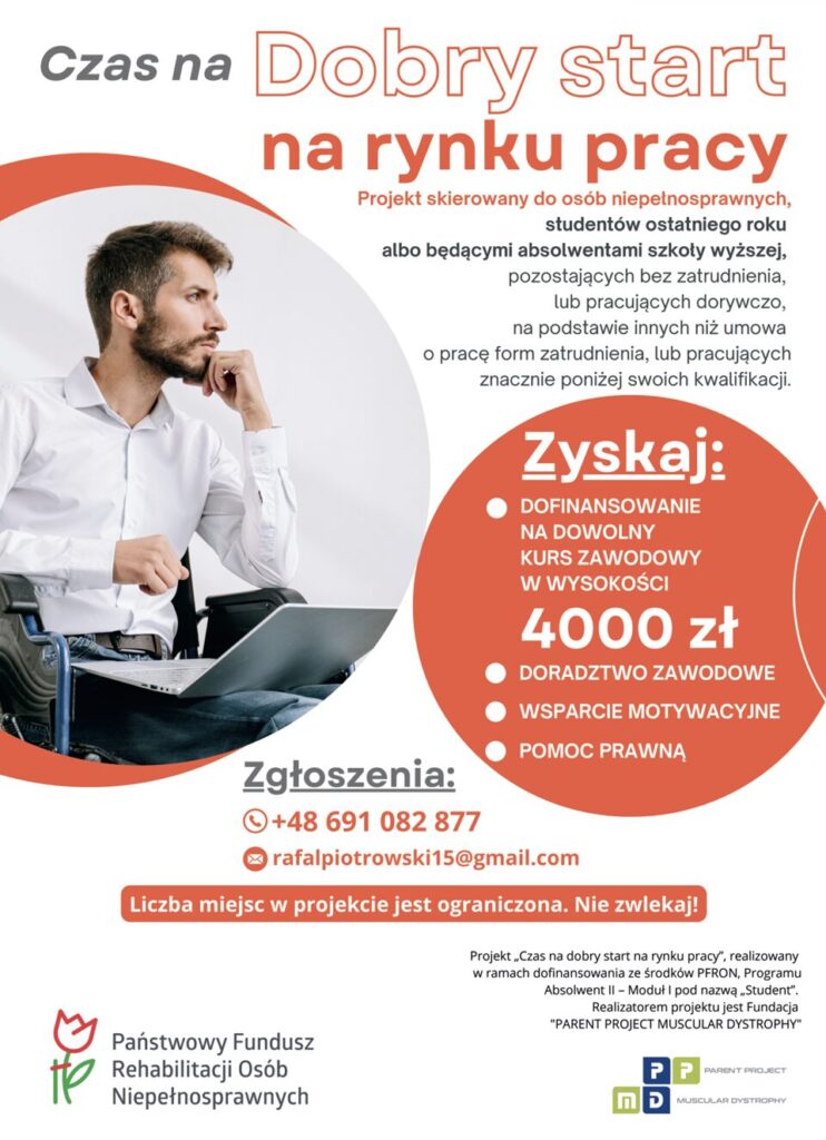 Jesteśmy tu dla Ciebie. Biuro Karier to miejsce, w którym możesz liczyć na zrozumienie, profesjonalizm i realną pomoc. Zapraszamy wszystkich studentów z orzeczeniem o niepełnosprawności do korzystania z naszych usług i budowania swojej przyszłości zawodowej z naszym wsparciem.